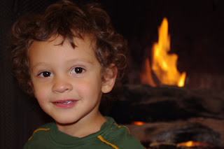 Since we've been here there has been some serious snow. Here's a picture of Carter in our backyard: